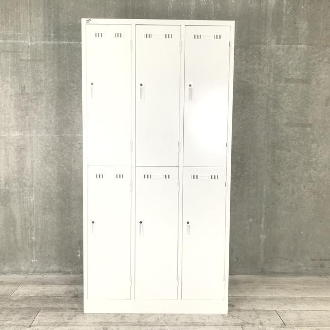 国内メーカーである生興製の上下2段タイプの6名用ロッカーとなります。