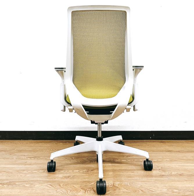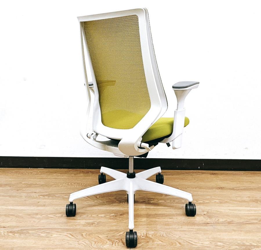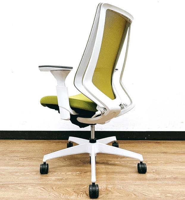 【二重フレーム構造がもたらすしなやかで美しい背もたれ機能!簡易操作で自分に合った姿勢をサポート!】■コクヨ(KOKUYO)製 デュオラ(Duora) 肘付ハイバック ■ライトオリーブ×ホワイトシェル ■背面メッシュ ■可動肘
