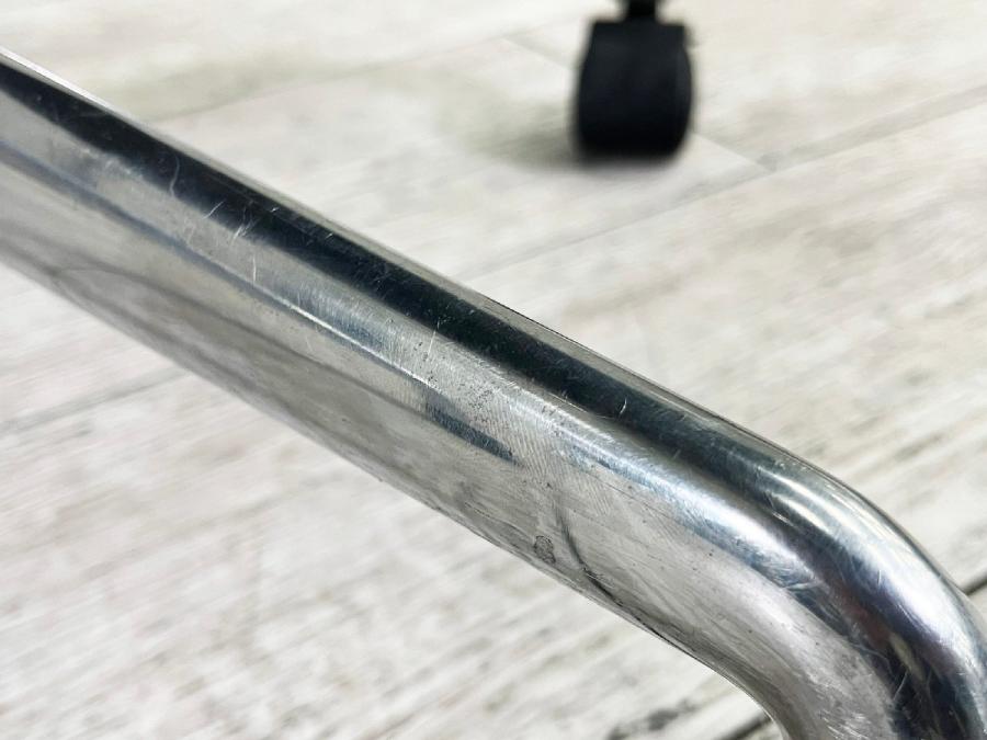 アーム部分に目立つアルミの腐食、キャスターに欠けがあります。(写真参照)