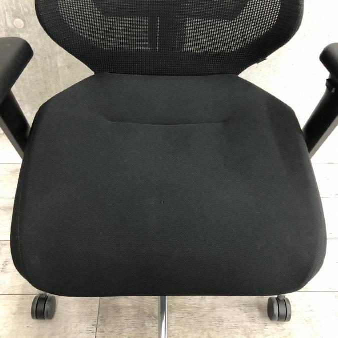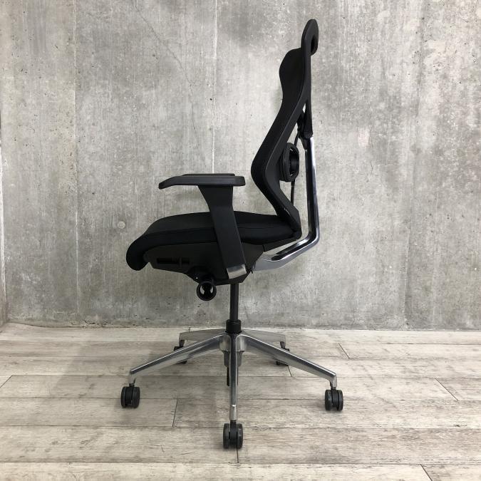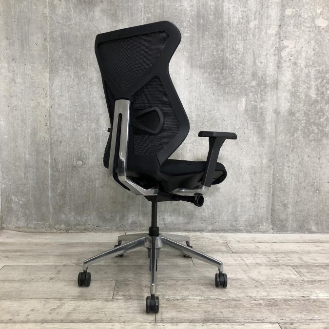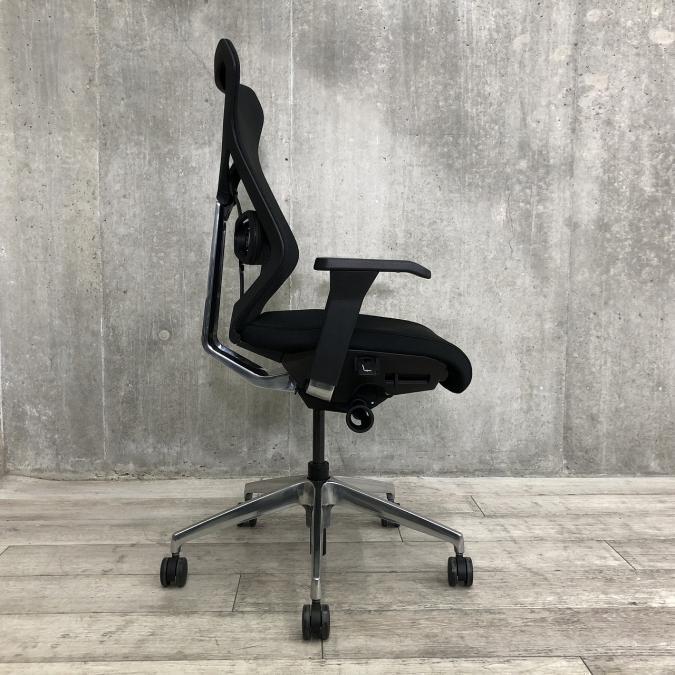 【2018年製】イトーキ製 セクア ブラック 肘付き ハイバックチェア 背面メッシュ アルミミラー脚アジャスタブル※可動肘 ランバーサポート・ヘッドレスト付 理想的な姿勢を追求した特徴的なデザイン! 座り心地も快適なハイバックチェアの入荷 肘付きハイバックチェア!!