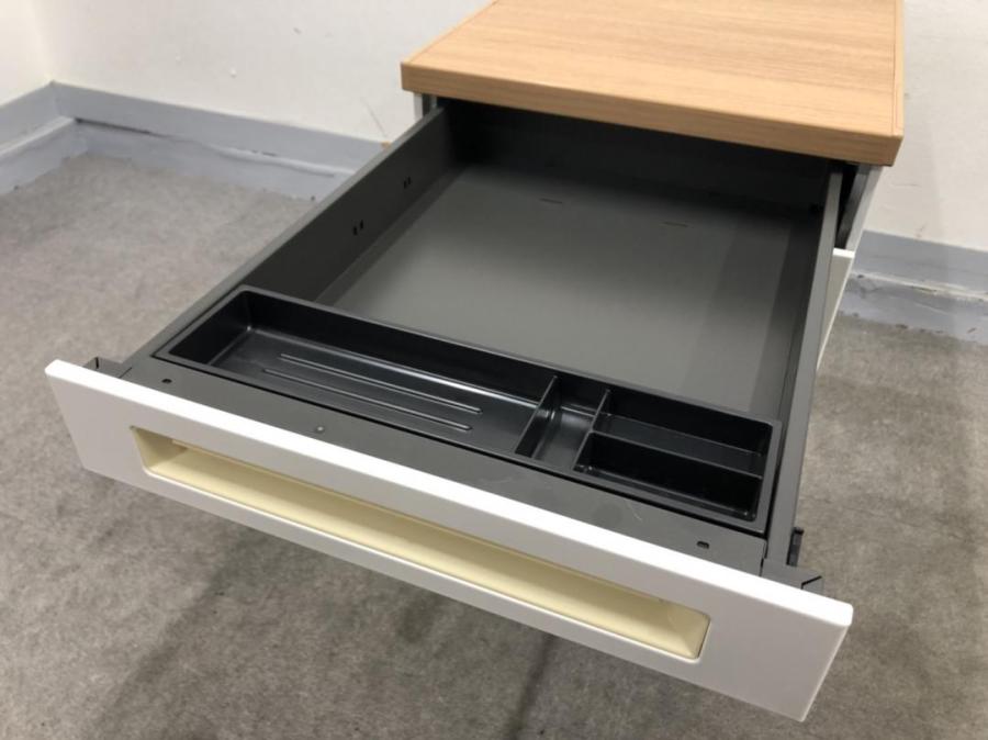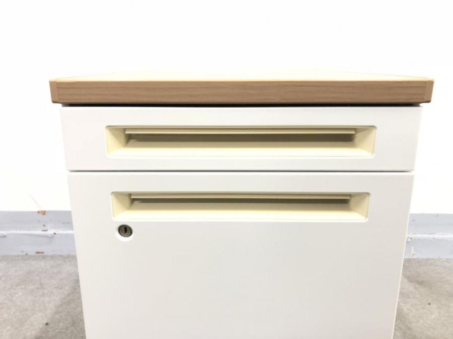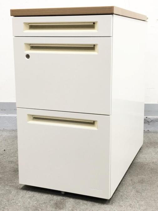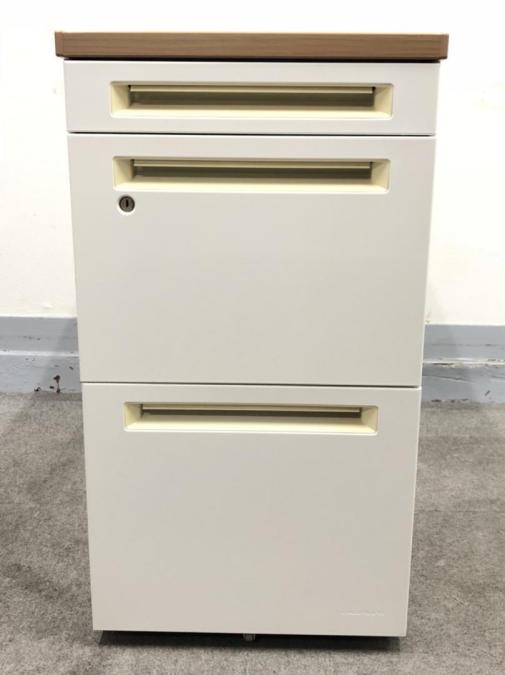 【ワークスペース追加にもオススメ!】■オカムラ アドバンスシリーズ 3段脇机 天板ナチュラル濃いめ/本体ホワイト ■便利に使える!デスクサイドキャビネット!【管理番号:A0087291・A00907971】在庫がある店舗一覧