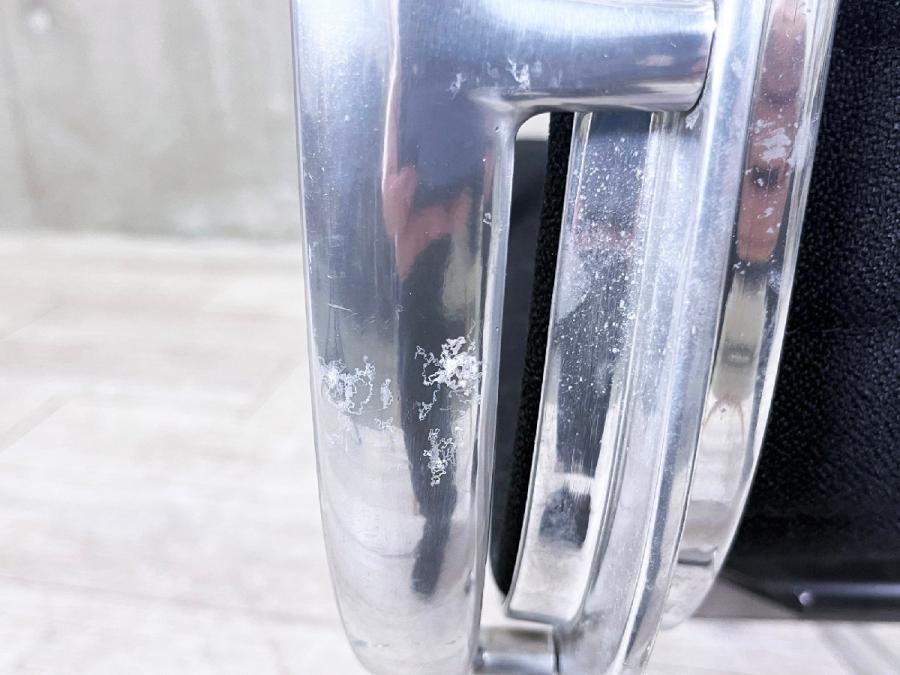 アーム部分に目立つアルミの腐食、キャスターに欠けがあります。(写真参照)