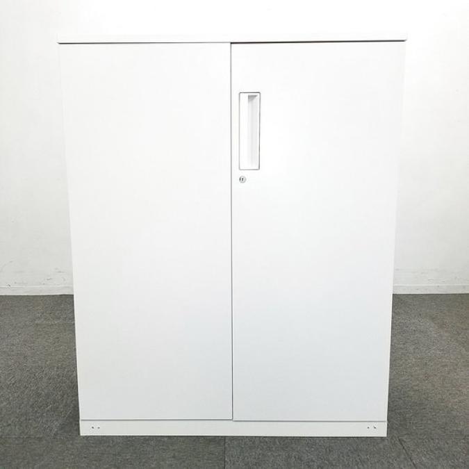 【収納物がひとめで分かる両開き戸タイプ!】■コクヨ(KOKUYO)製 エディア(EDIA)シリーズ 両開き書庫 ローキャビネット H1130㎜ ■天板・ベース付 ■ホワイト ■シリンダー錠