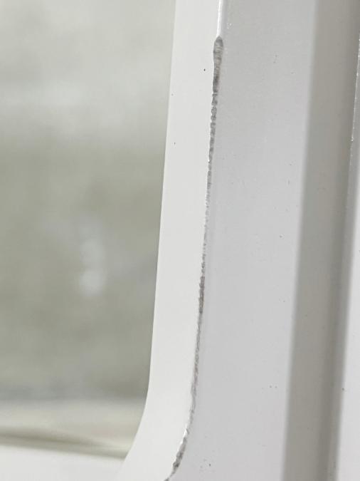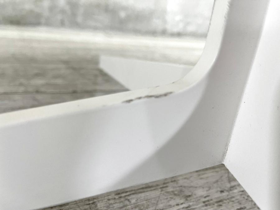 - かなり強い濃い黄ばみ・変色が商品全体にある。(例、天板、幕板、棚板、サイド部分、脚部等にある。)