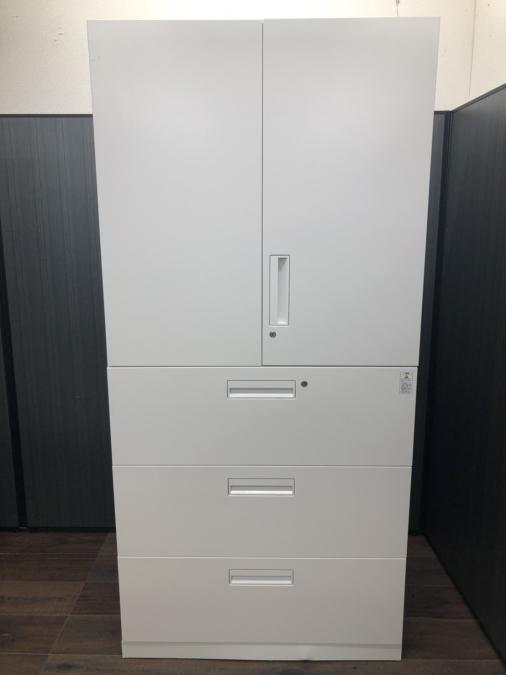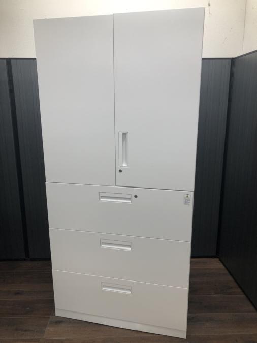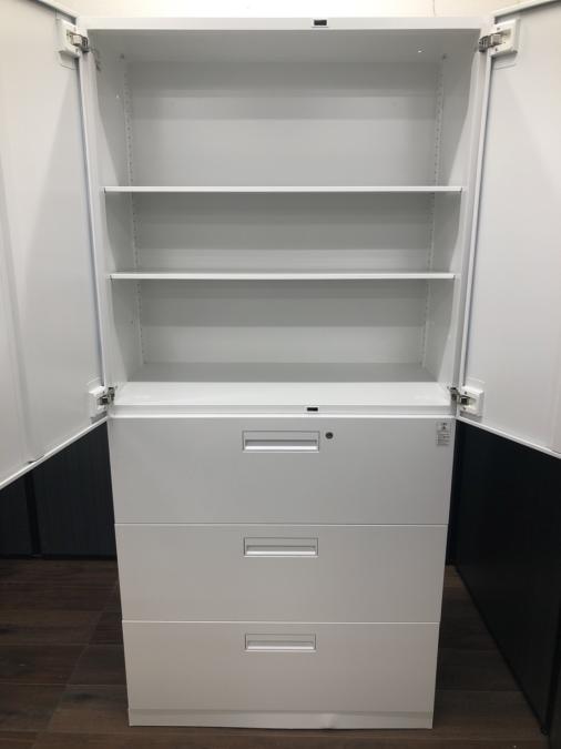 【収納量抜群の書庫セット!観音開き+引き出しタイプの人気の組み合わせ!】■コクヨ(KOKUYO)製 エディアシリーズ(EDIA) 両開き+3段ラテラル 書庫セット ハイキャビネット ■シリンダー錠 ■ホワイト