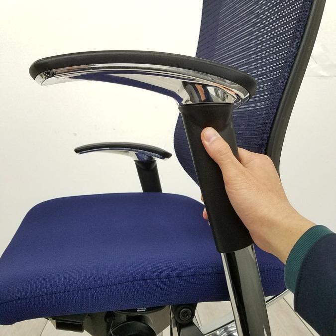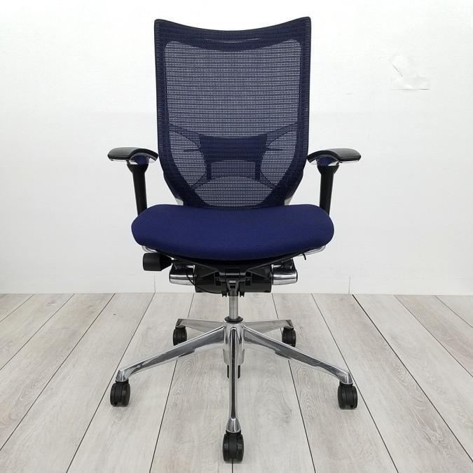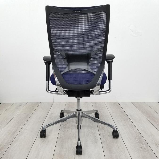 【2脚入荷】【オフィスの執務室、会議室におすすめ!】■オカムラ(okamura)製 バロン(Baron)チェア 肘付き ハイバック 背面メッシュ ■可動肘 ■ダークブルー × ホワイトシェル【硬めの座面が大人気!国産メッシュチェアの代表格!】