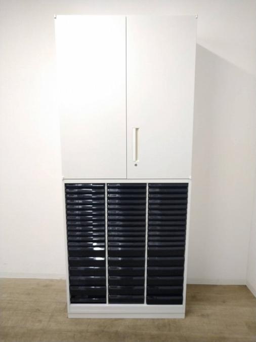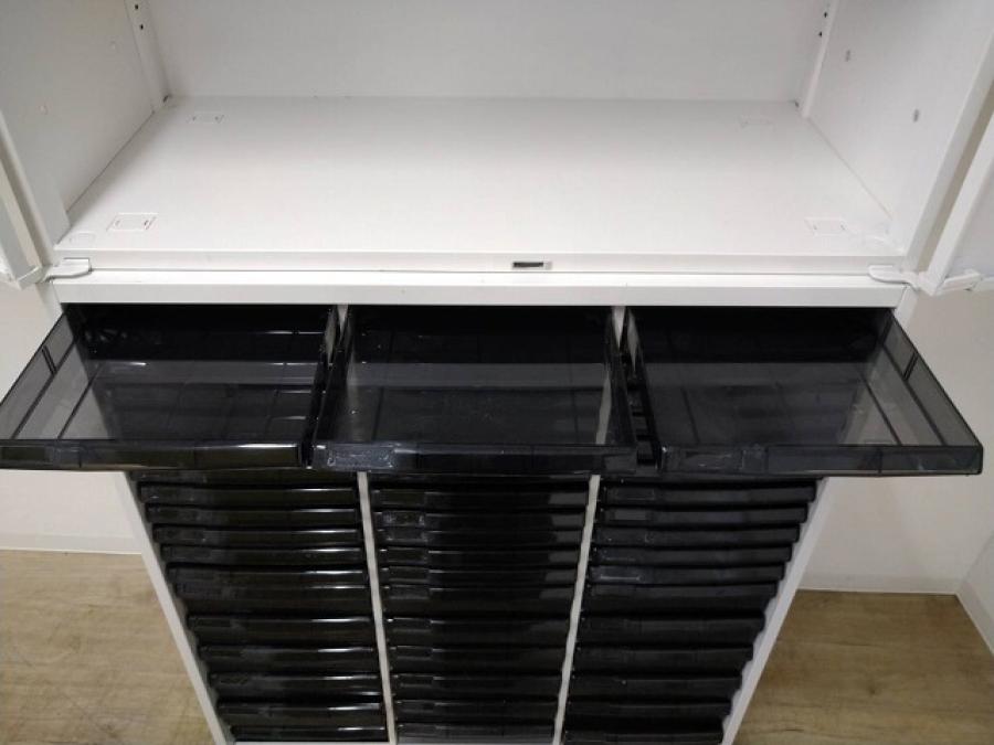 両開き書庫とクリスタルトレイキャビネットの上下セット商品になります!