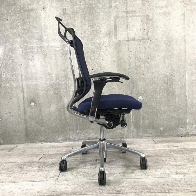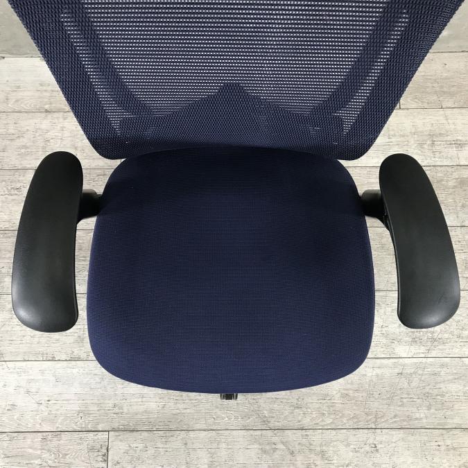 【オカムラ製の最高級チェアが残り1脚限りです!!】オフィスバスターズ 東大阪店 オカムラ製 コンテッサ シリーズ ダークブルー アジャストアーム※可動肘 背/座面メッシュ ランバー 世界で認められた革新的タスクチェア!人間工学に基づいた快適な座り心地を実現! 肘付きハイバックチェア!! 中古 外部倉庫品
