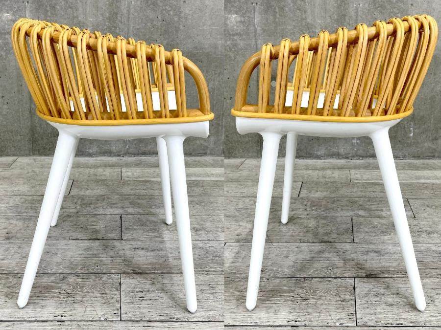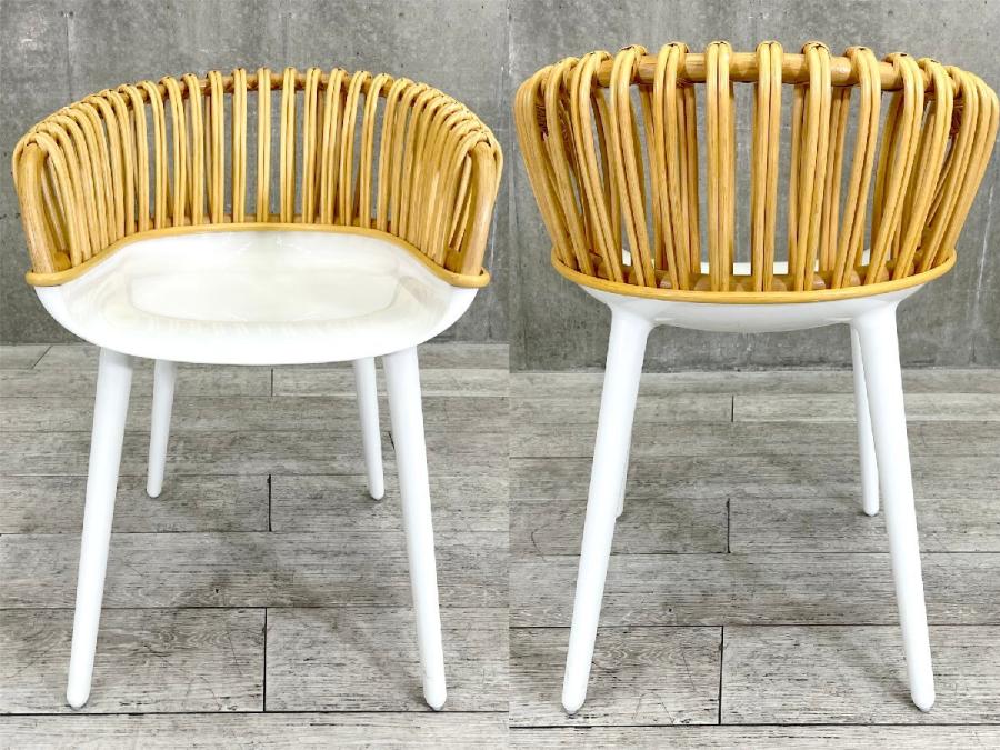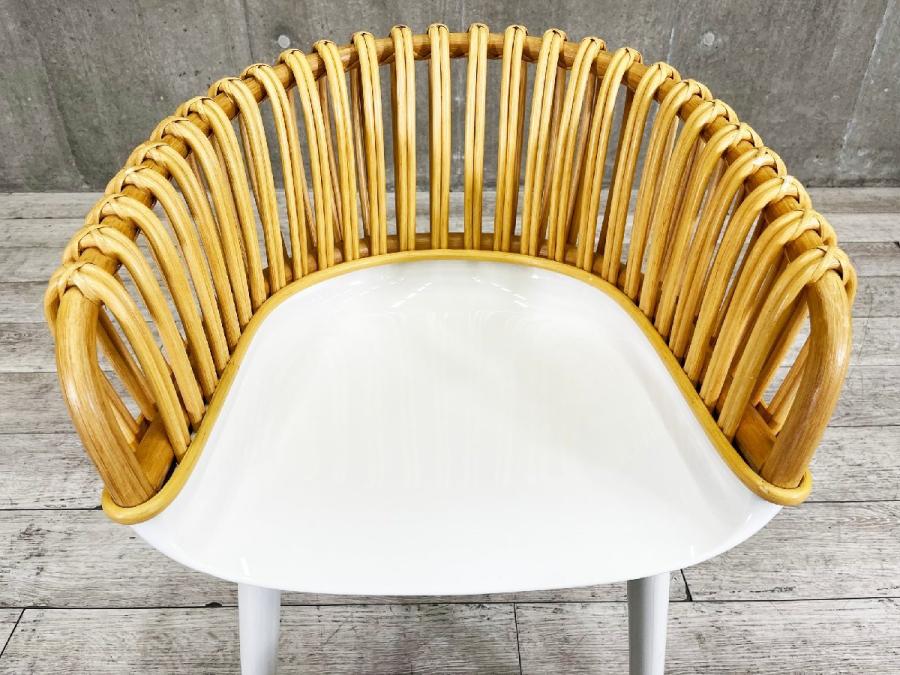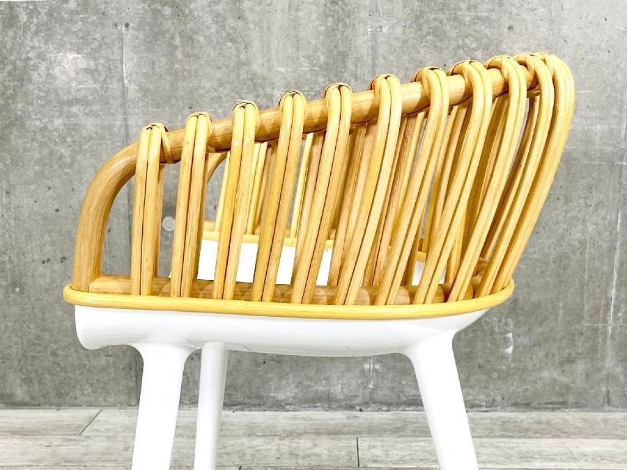 工業製品であるポリカーボネイトをベースに、職人の手による伝統的な籐細工の背もたれを合わせたウィッカーの「クラブ」と「エレガント」はまさにこのシリーズのコンセプトを体現するチェアです。