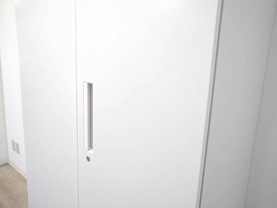 - 扉や引出しに、ラッチ機構を装備。地震時に勝手に扉や引出しが開き、収納物がユニットから飛び出すのを抑制します。