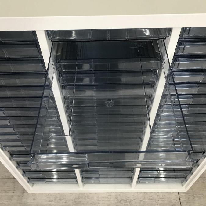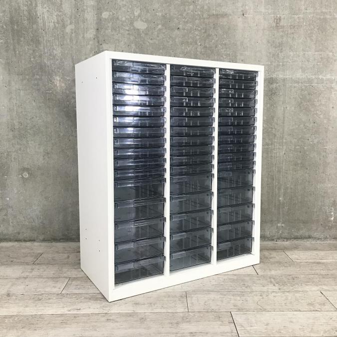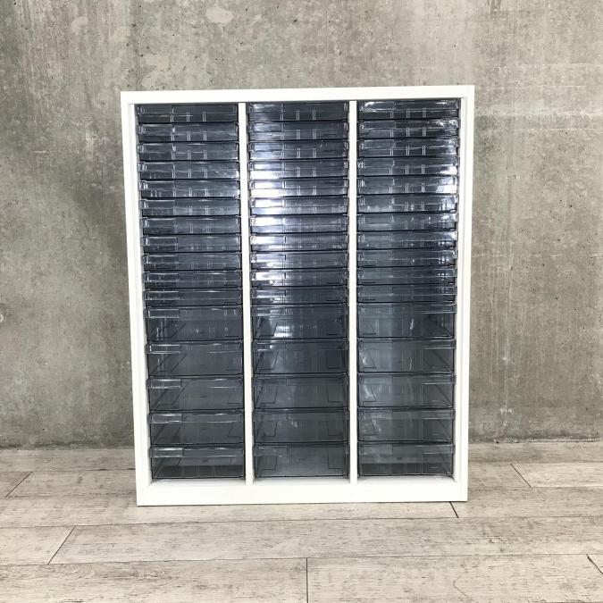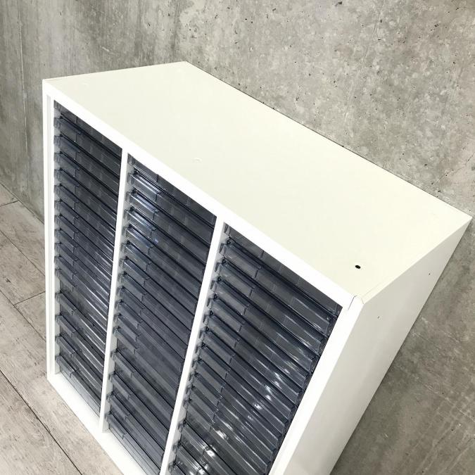 ★オカムラ製 レクトライ ホワイト 3列x16段 浅型x11段/深型x5段混在 W900xD450xH1150サイズ 天板付 クリスタルトレーキャビネット クリスタルトレイ!!