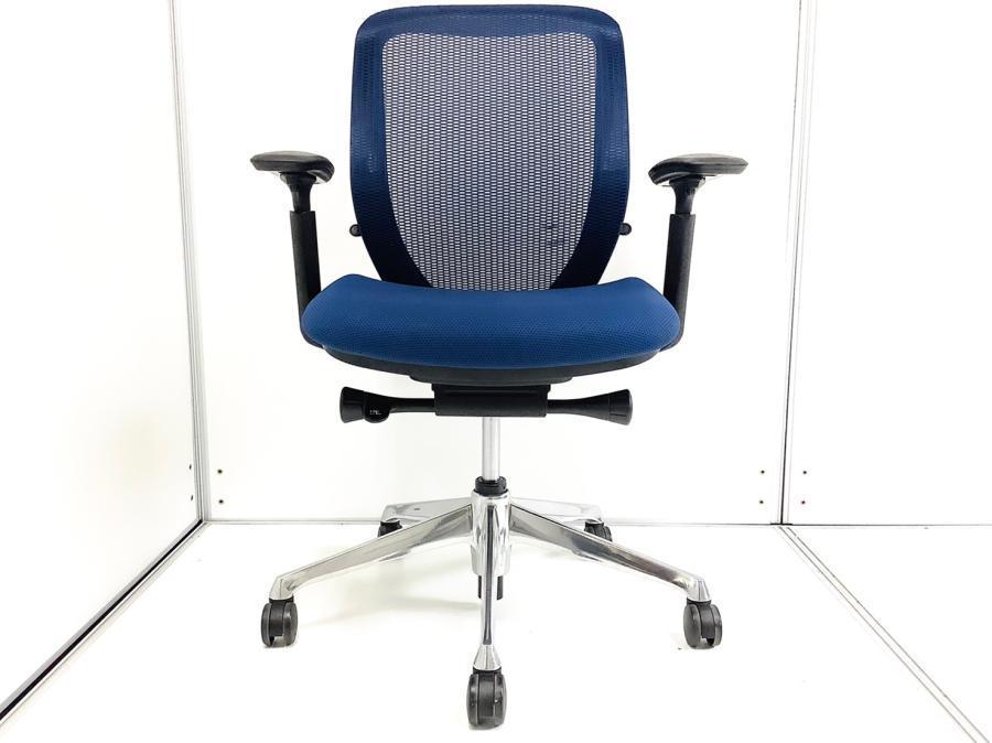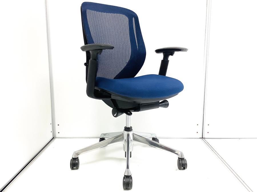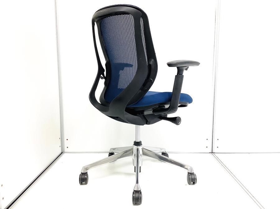 【まるで手を添えて包み込まれるような優しい座り心地!】■オカムラ シルフィーチェア 可動肘付 ミディアムブルー ローバック ※キズあり商品のためお安く!【Okamrua Sylphy】★