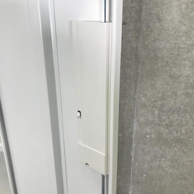 - 扉や引出しに、ラッチ機構を装備。地震時に勝手に扉や引出しが開き、収納物がユニットから飛び出すのを抑制します。
