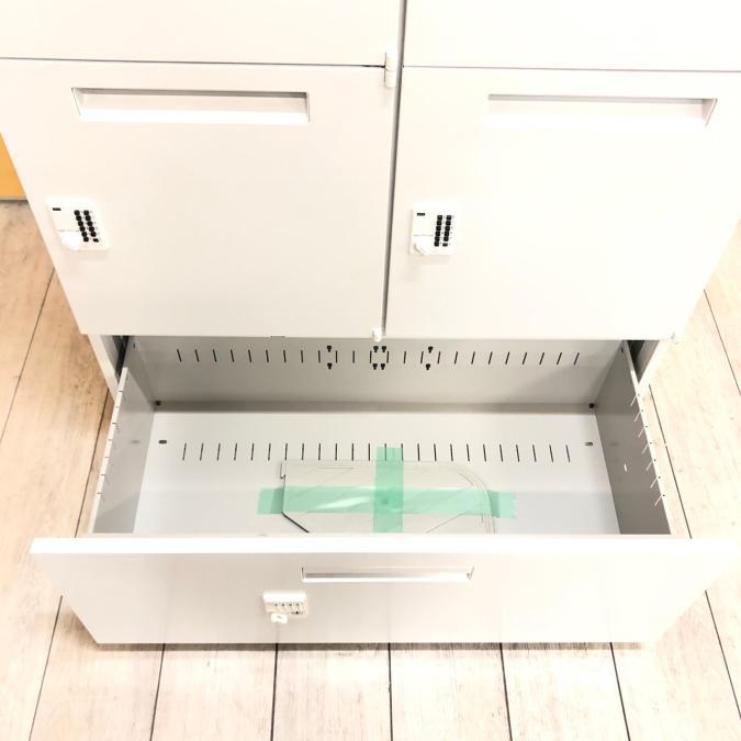- 一部不具合ありそ引出の開閉不可、施錠不可、棚板無しといったの書庫の本来の効用を果たすための機能以外の一部が使用不可(例、扉、引出の開閉がしづらいなどがある。 )