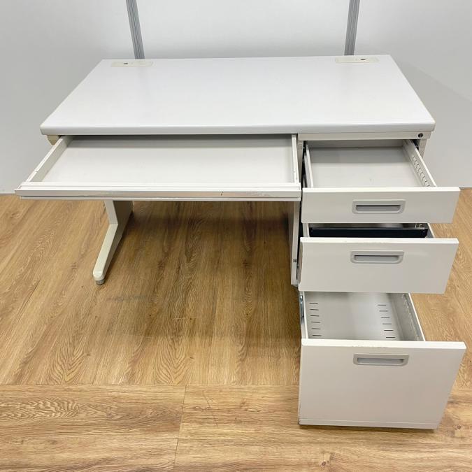 【訳あり:目立つ擦れキズあり】人気W1200サイズ ニューグレー 片袖机!!※現物画像※- 京都東寺店