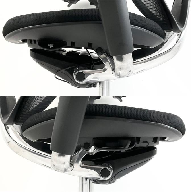 - 座面右下のレバーをスライドさせる「クイックスライドオペレーション」で、リクライニング反力を調整できます。強さの状態が視覚的にわかるため、直感的に操作がおこなえます。
