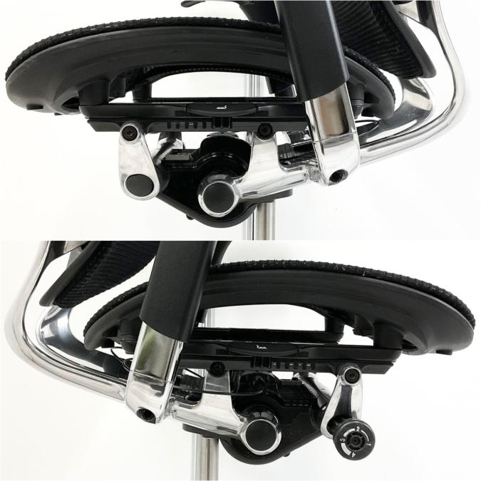 - 座面の前後スライド調整レバーで操作(前後50mm分調整で)できます。(グラデーションサポートメッシュタイプを除く)