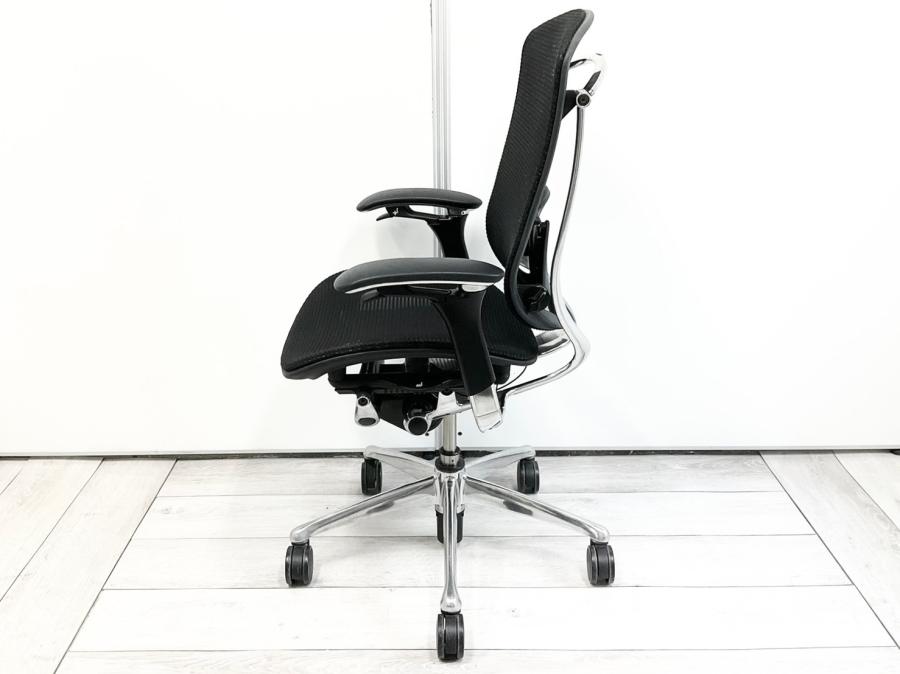 【世界で認められた革新的タスクチェア!人間工学に基づいた快適な座り心地を実現!】■オカムラ(okamura)製 コンテッサ(Contessa)チェア ハイバック 肘付き 背面メッシュ ■可動肘・ランバーサポート付 ■ブラック ※肘スレ有