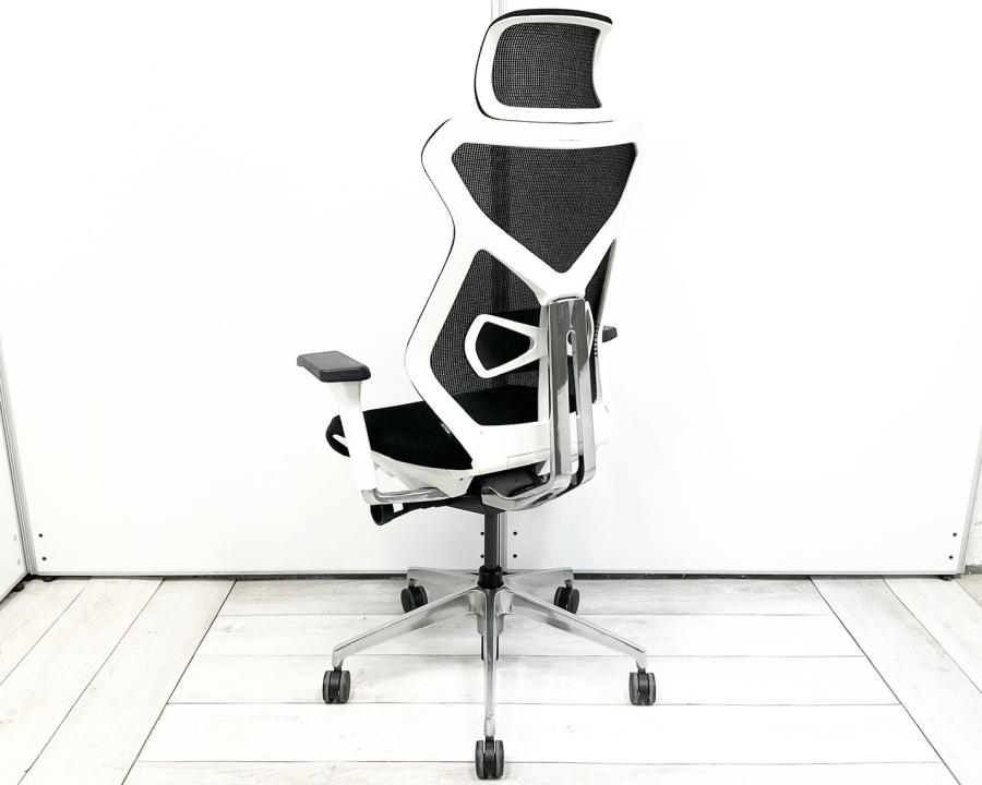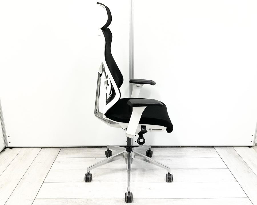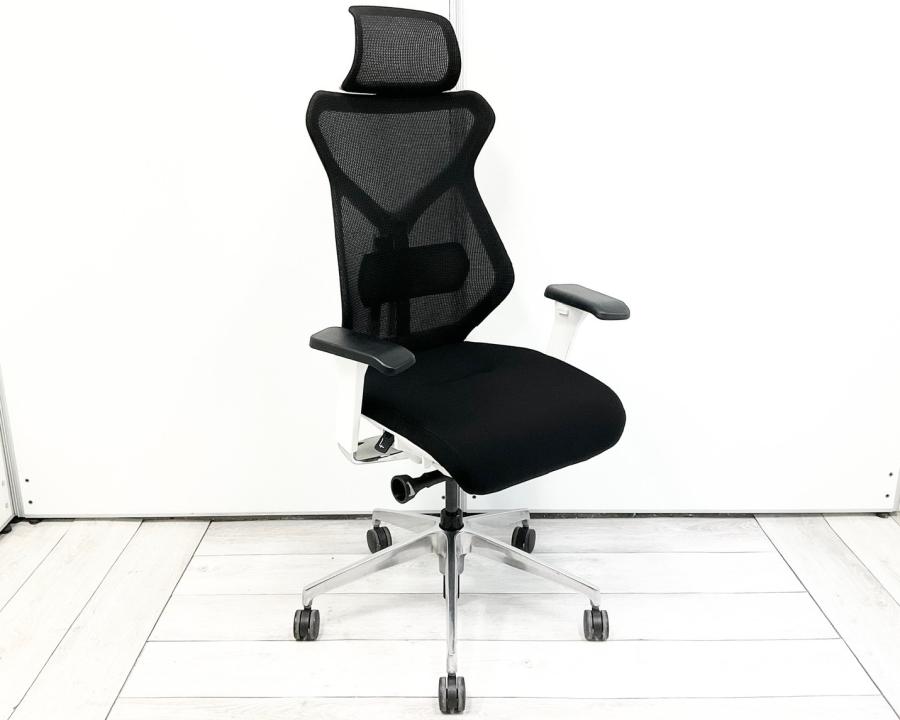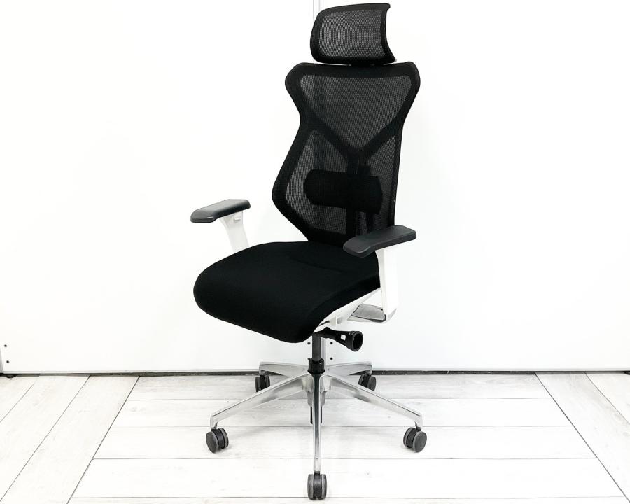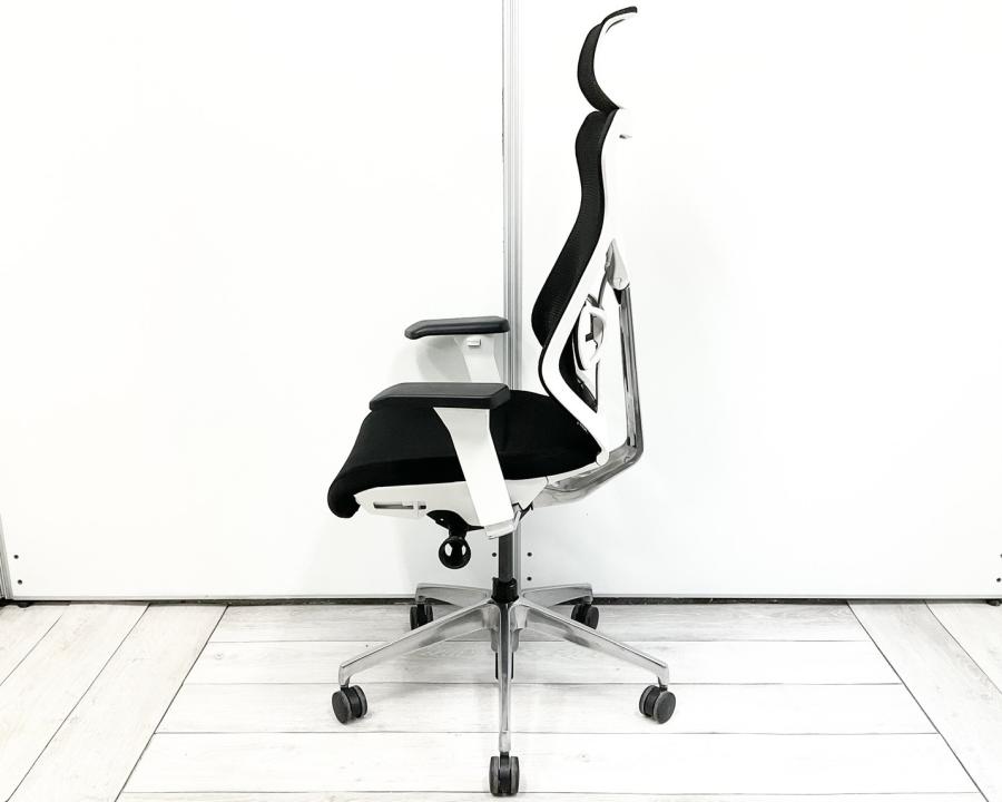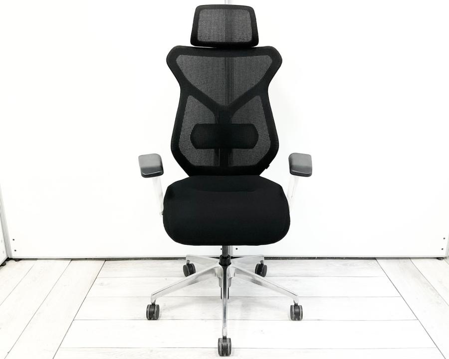 【2018年製】イトーキ製 セクア ブラック 肘付き ハイバックチェア 背面メッシュ アルミミラー脚アジャスタブル※可動肘 ランバーサポート・ヘッドレスト付 理想的な姿勢を追求した特徴的なデザイン! 座り心地も快適なハイバックチェアの入荷 肘付きハイバックチェア!!