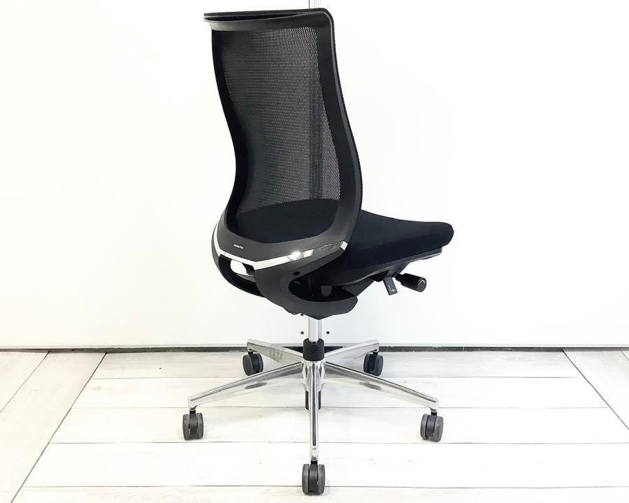 お洒落なテクスチャードメッシュ仕様!前傾機能付き高級チェア!重厚感のあるブラック×ポリッシュ仕様 応接室や会議用にもおすすめ! ■コクヨ/ベゼル/ブラック 肘無タイプ
