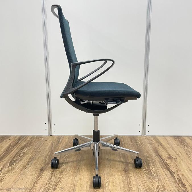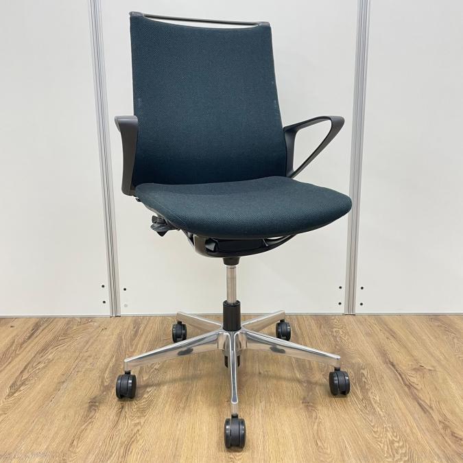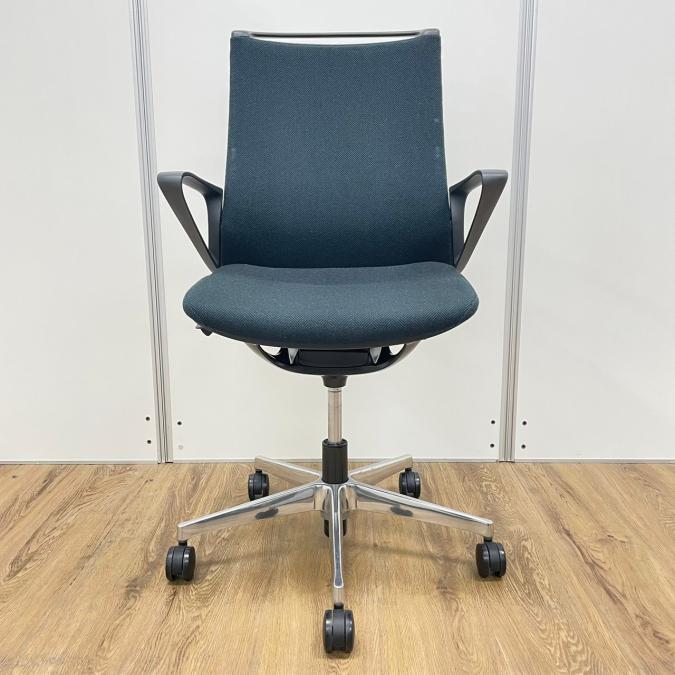 【在庫入替セール】オカムラ モード デザインアーム搭載 ミドルバック ブラック×アルミ脚 張地:クロス(プレーン) 高いデザイン性×シンプルかつ操作性のある機能