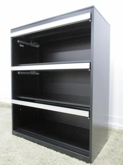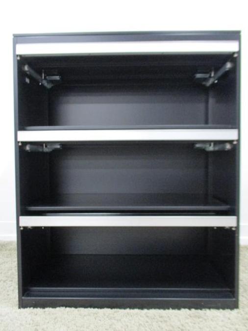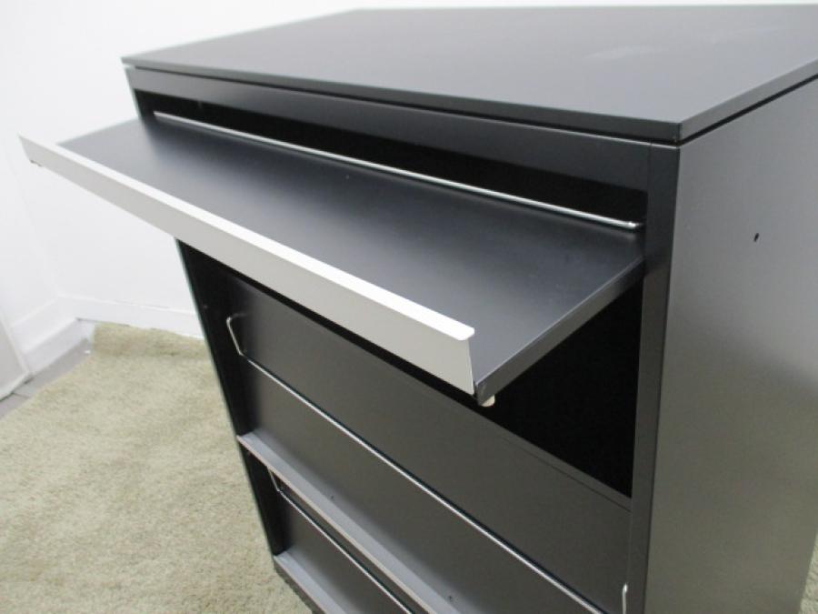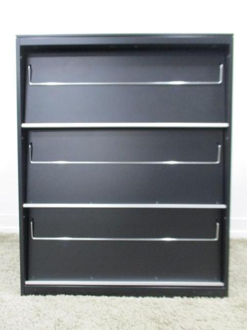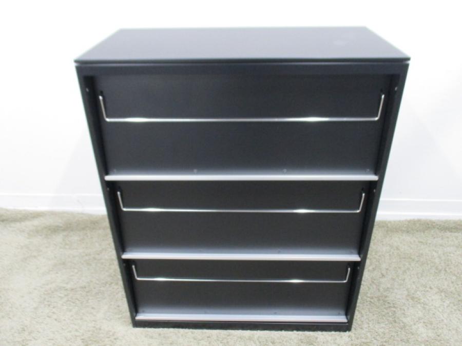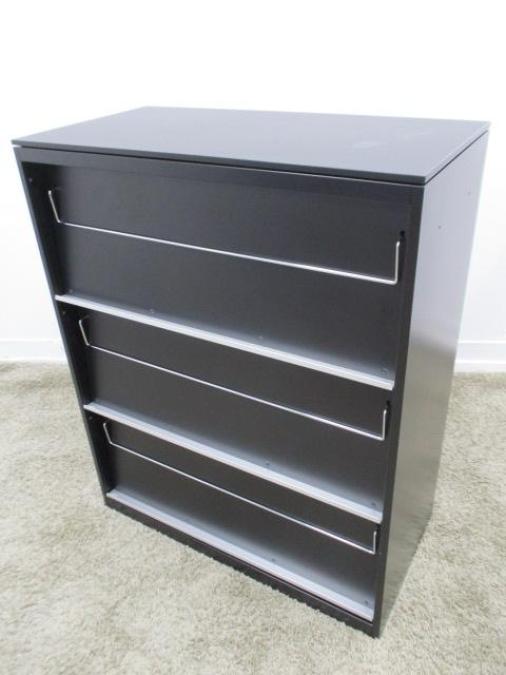 【パンフレット・カタログ等の保管にもオススメ!】■オカムラ製 雑誌架 3段収納 天板付 ■スタイリッシュなブラックカラー!【マガジンラック】- 茨城南店