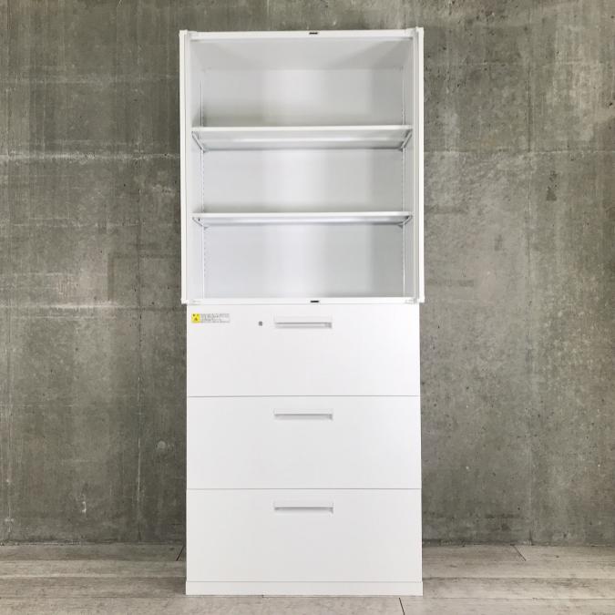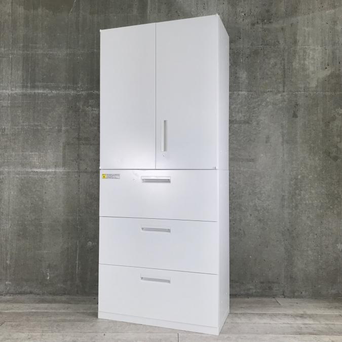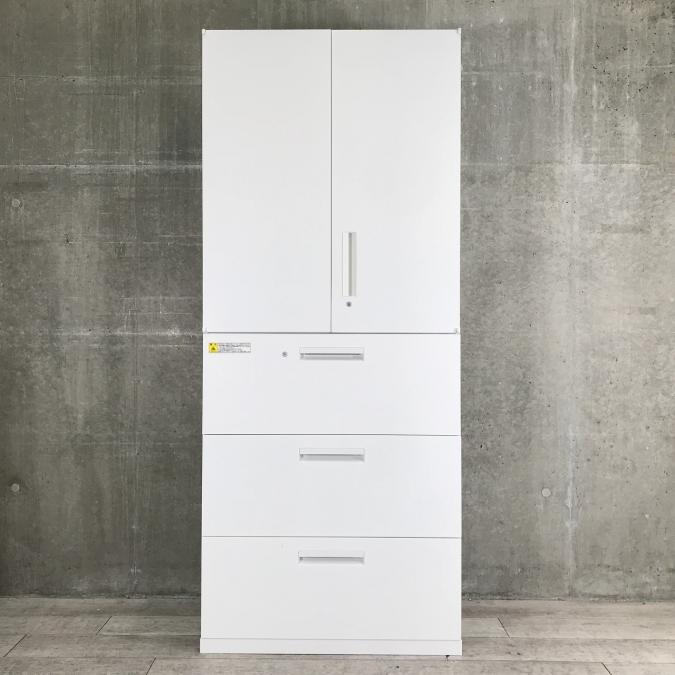 定番シリーズ!収納量抜群!観音開き+引き出しタイプのキャビネットセット! ■内田洋行/HS/ホワイト