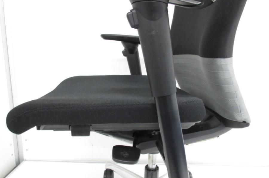 【背あてのしなやかな曲線が背中にフィット!快適な座り心地に高級感のあるデザインが人気!】■オカムラ(okamura)製 フィーゴ(feego)チェア 肘付き ミドルバック ■可動肘 ■ダークグレー×ブラック【AD】