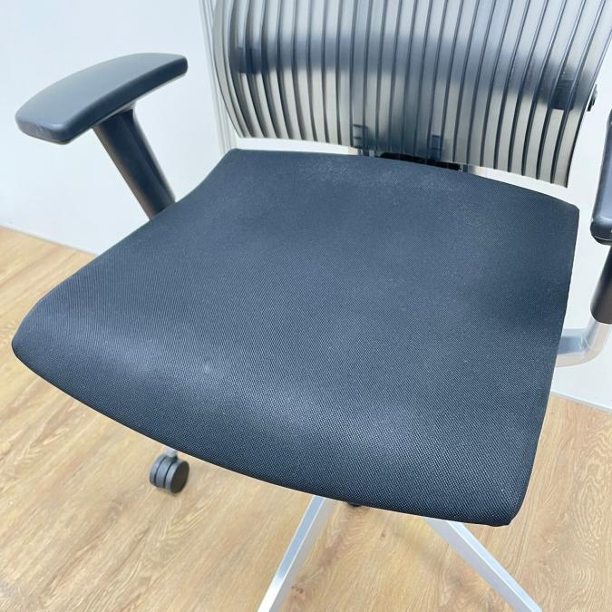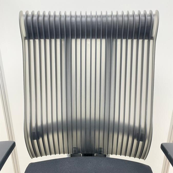 見た目は少し硬そうに見えるエラストマー素材ですが、座ってみると程よいしなり具合のやわらかな座り心地で、背中が痛くなるようなことはまるでありません。面ではなく線で支えることで、背面の通気性の良さは抜群です。