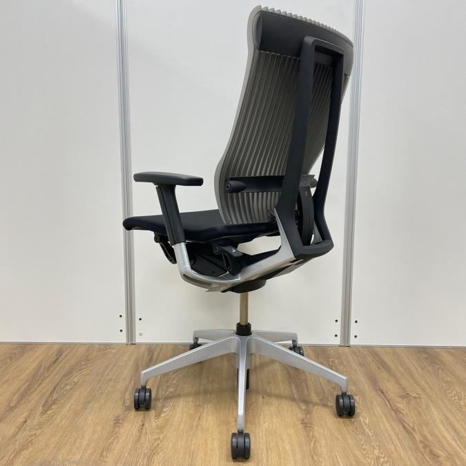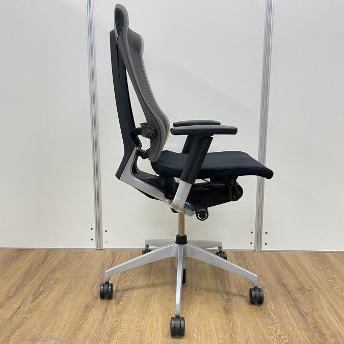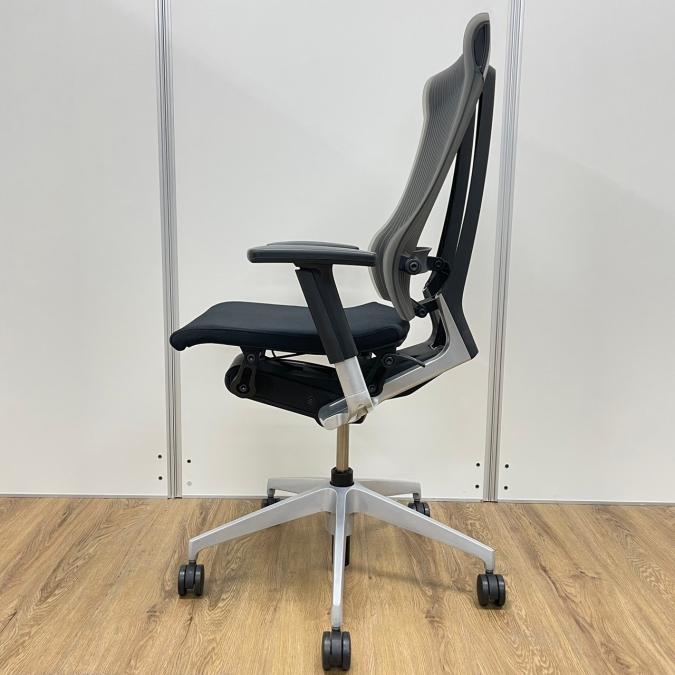 一番の特長は、着座時にチェアがピタっと体にフィットしてくれることです。 人がチェアの座り心地を調節するのではなく、チェアが人に合わせて動くのです!着座時に座面が沈み込みながら後方へスライドし、それと同時に背もたれの腰部分が前にせり出し、「ずっと座っていたくなる」と言われるほどの座り心地に調節してくれます。それを実現しているのが、A.L.S(アクティブ・ランバー・サポート)機構とP.S.S(パッシブ・スライド・シート)機構です。 さらに、背もたれにかかる体圧を徹底的に分析して作られた絶妙なカーブが、常に腰をサポートしつつ背骨のラインに沿ってくれます。