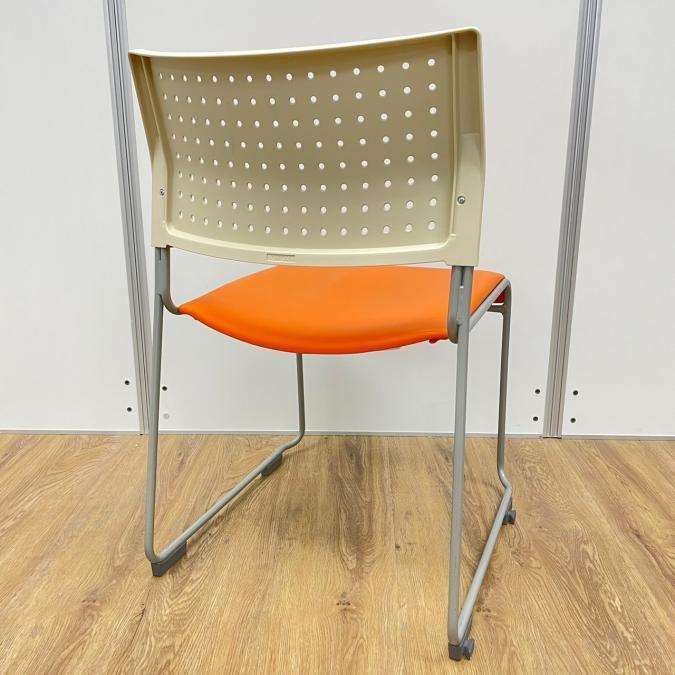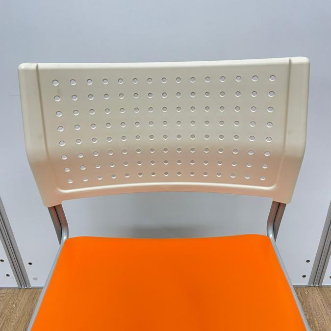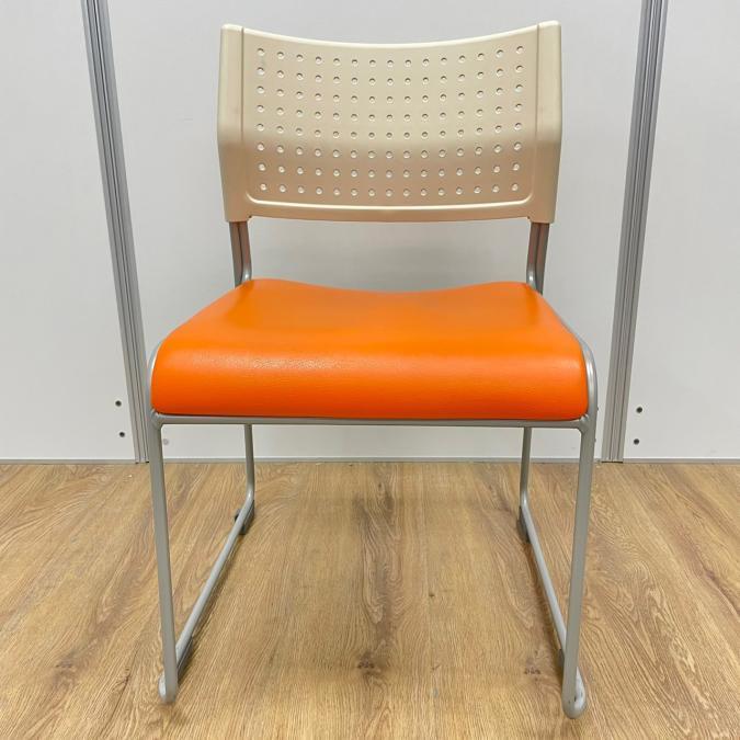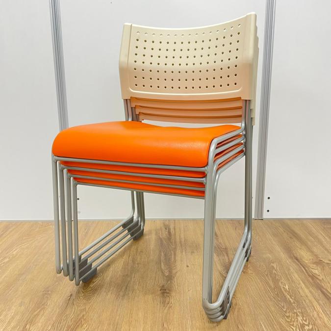 【在庫入替セール】【4脚1セット】アイリスチトセ製 オレンジカラー 汚れてもすぐ洗えるビニール生地 スタッキングチェア!!- 京都東寺店