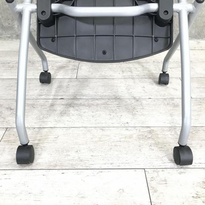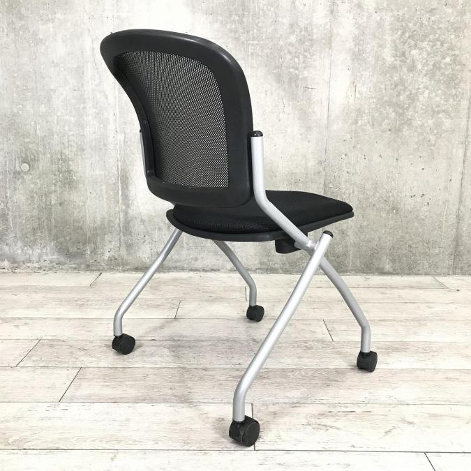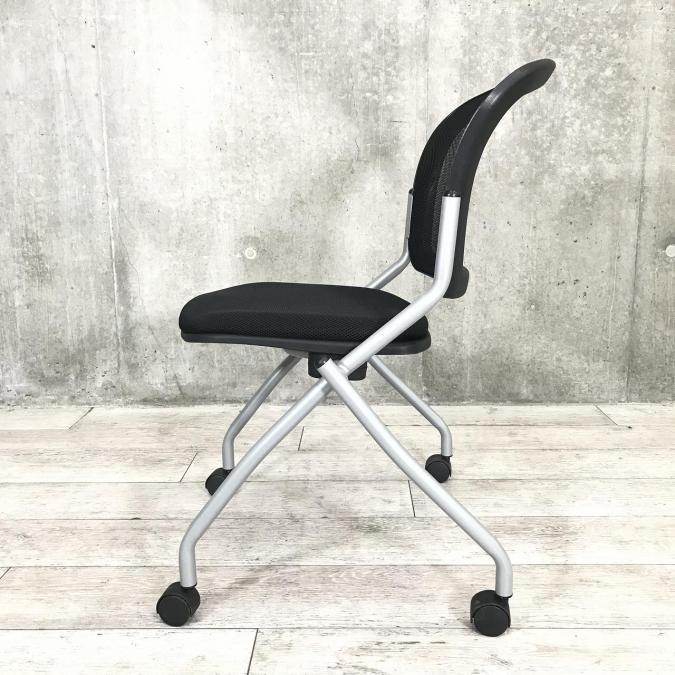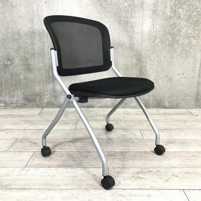 【会議室や休憩スペースにピッタリ!】TOKIO製 ブラック&シルバーフレーム 座面折りたたみ式ネスティングチェア/メッシュ/キャスター付き【RP】- 埼玉本店