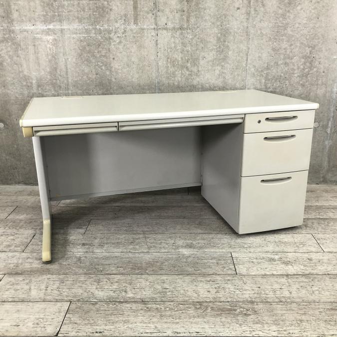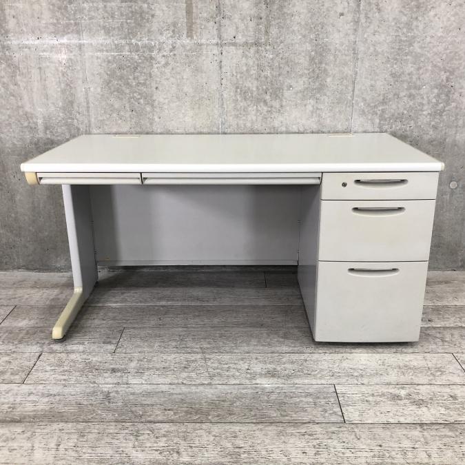【関西倉庫在庫品】■オカムラ(okamura)製 SD-Vシリーズ 片袖机 幅1400㎜ ■色:ライトグレー【オフィスの定番! ワークスペース広々の幅1400㎜! 収納も充実で使いやすい!】