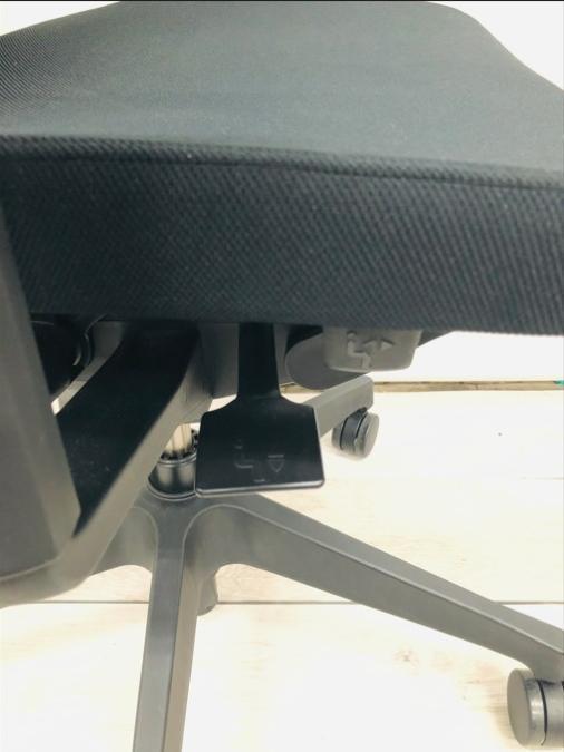 - 座面下のレバー操作により、座面を50mmのストローク(16.7mmピッチ)で好みの位置に調節できます。体格や作業姿勢に合わせたポジション設定が行えます。