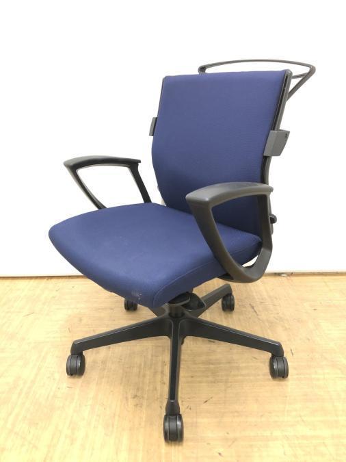 【在庫入替セール品】【長時間のデスクワークもランバーが快適にサポート!オフィスの定番チェア!起業や入替に!】■オカムラ(okamura)製 エスクードチェア(ESCUDO) 肘付き ローバック ■サークル肘 ランバー付 ■ダークブルー×ブラックシェル【弊社使用欄:A01030477 K】【ID】