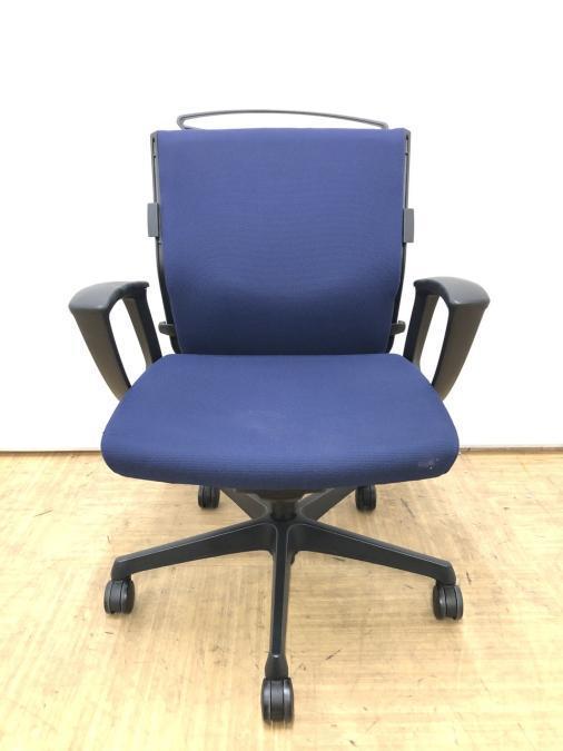 【関西倉庫在庫】■オカムラ(okamura)製 エスクードチェア 肘付ローバックチェア ■ダークブルー×グレーシェル ■デザインアーム ■ランバーサポート 【弊社使用欄:A01029268】