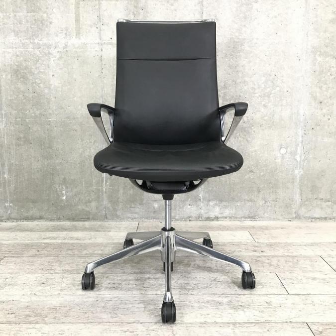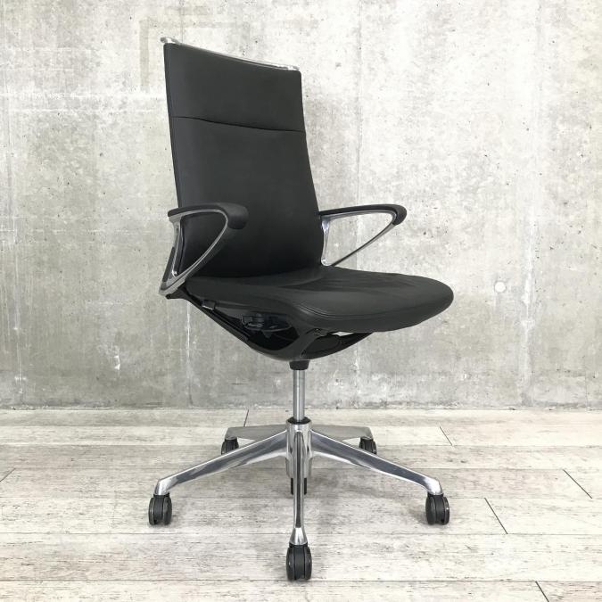 【会議室やモダンなオフィスの執務用として人気のチェア!レザータイプが入荷!】■オカムラ(okamura) モードチェア(mode) 肘付き ハイバック ■張地:レザー 色:ブラック ■デザインアーム