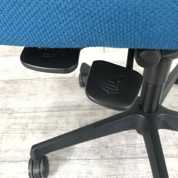 【入れ替えセール品につきお値下げ中!】 オカムラ エスクード 肘無し ローバック ターコイズブルー 【オフィスが綺麗に映えます!】- 足立・葛飾店
