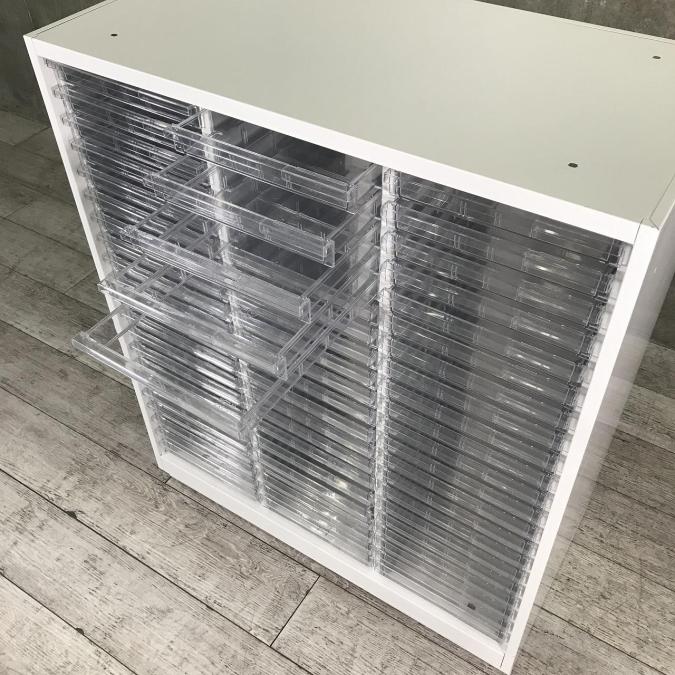 【西】【イトーキ製】【クリスタルトレー】【収納】【なんと定価14万!!中古希少美品!】即完売するレア品です‼浅型1段、深型10段!【福岡オフィス家具】【福岡中古家具】【中古事務什器】【中古チェア】【中古椅子】※全在庫品から平均的な商品を選定して撮影しております