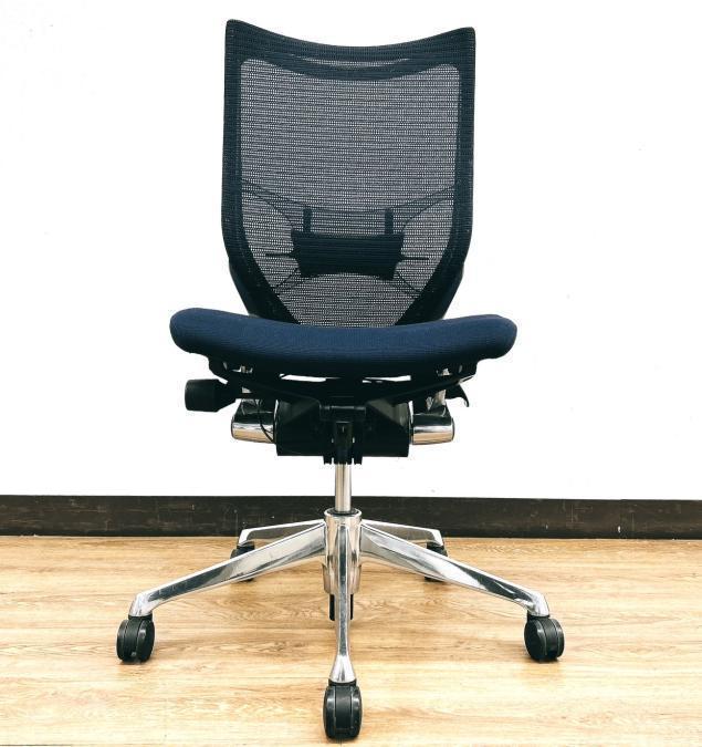 【8脚入荷】大人の雰囲気!ダークブルーバロン(Baron)チェアポリッシュフレーム仕様※ランバーサポート付き ■オカムラ/バロン/ネイビーブルー/肘無- 池袋店