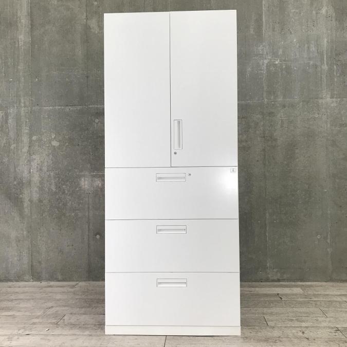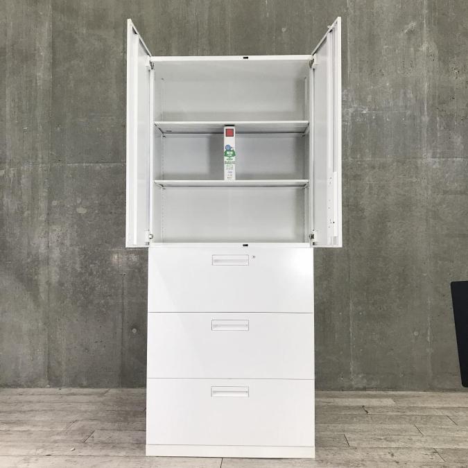 【収納量抜群の書庫セット!観音開き+引き出しタイプの人気の組み合わせ!】■コクヨ(KOKUYO)製 エディアシリーズ(EDIA) 両開き+3段ラテラル 書庫セット ハイキャビネット ■シリンダー錠 ■ホワイト