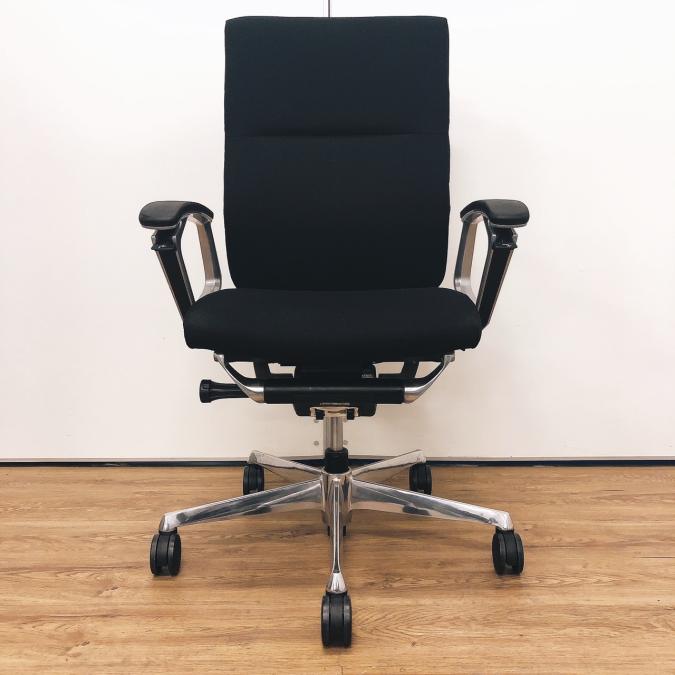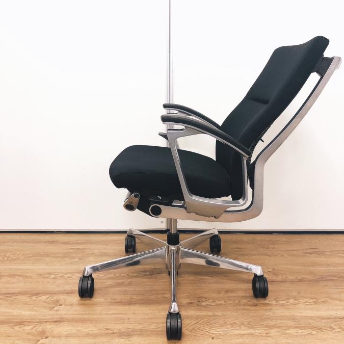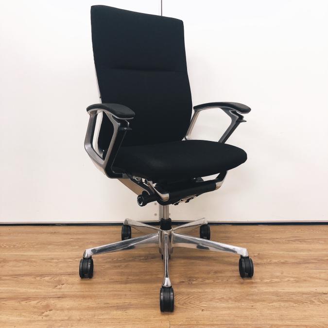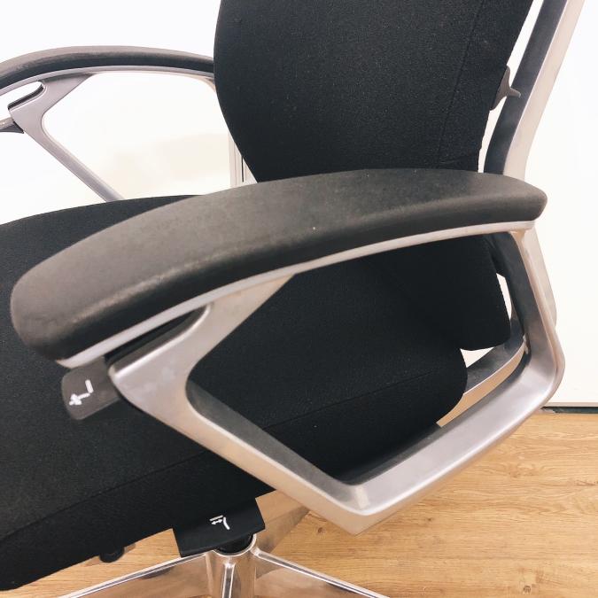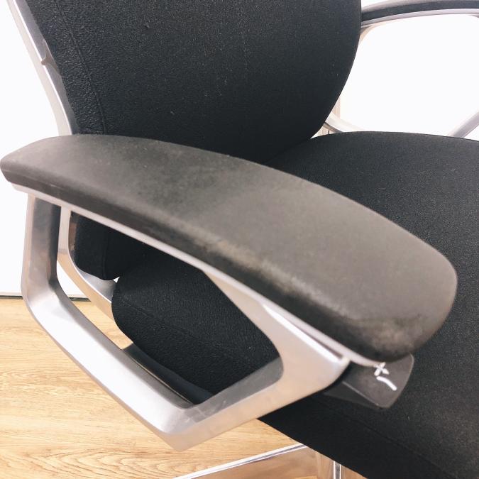 ※ひじ掛け部分に使用感ありのため、特価!【オカムラの最上級モデル!高級感と機能性を融合させたチェア!】■ハイバック 肘付き 背・座クロス張地(スエード調) 固定肘 ※サイド剥がれ有り ランバーサポート付き ブラック/オカムラ/デューク