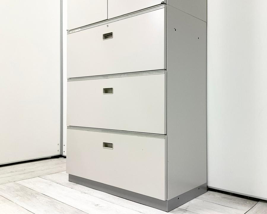 【倉庫在庫品】【これ1台で書類整理の問題が解決!上下で6段分の大容量収納!】■イトーキ (ITOKI)製 シンライン ハイキャビネット 両開き+3段ラテラル 書庫セット ■グレー ■シリンダー錠