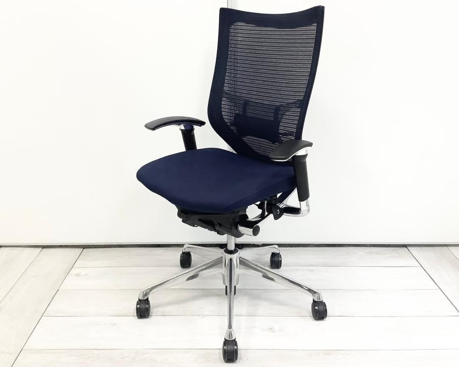 【オフィスの執務室、会議室におすすめ!】■オカムラ(okamura)製 バロン(Baron)チェア 肘付き ハイバック 背面メッシュ ■可動肘 ■ダークブルー × ホワイトシェル【硬めの座面が大人気!国産メッシュチェアの代表格!】
