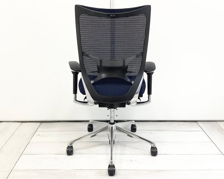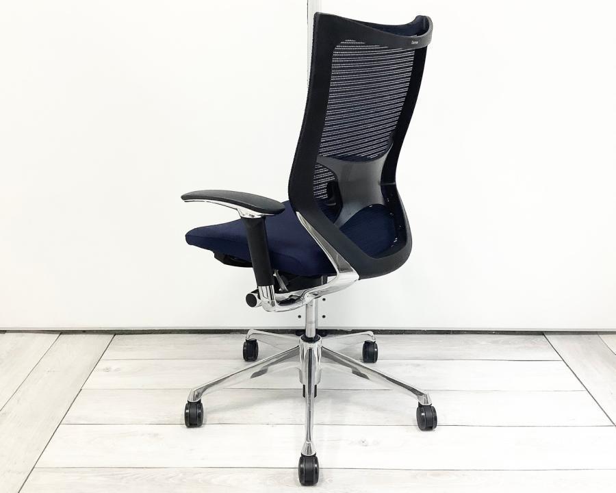 【オフィスの執務室、会議室におすすめ!】■オカムラ(okamura)製 バロン(Baron)チェア 肘付き ハイバック 背面メッシュ ■可動肘 ■ダークブルー × ホワイトシェル【硬めの座面が大人気!国産メッシュチェアの代表格!】【状態良好品!】