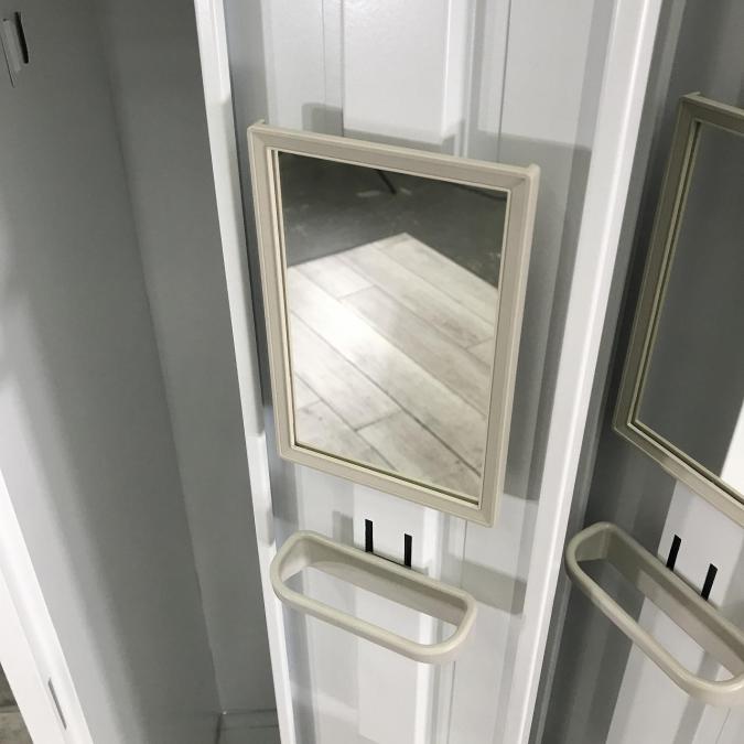 - 一部欠けあり鏡、ネクタイ掛け、傘立て、網棚、フック等が一部足りない。