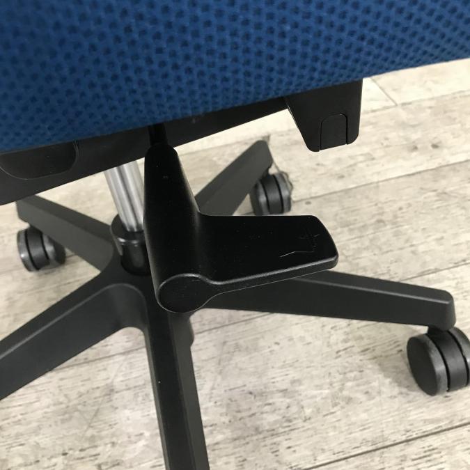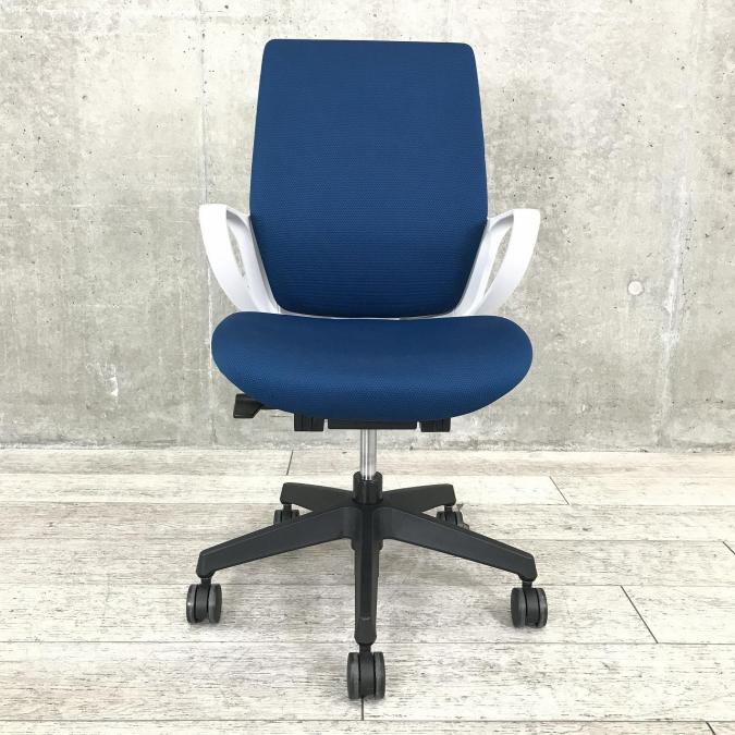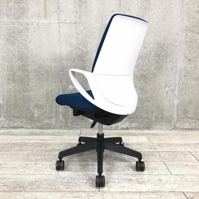 【デスクにスッキリ収納できるコンパクト設計!オフセットアームで必要最低限サイズでにデスクやテーブルに近づくことができ、収納時にも邪魔になりません!】■コクヨ(KOKUYO)製 ピコラチェア(picora) 肘付ハイバック ■固定肘 ■プルシアンブルー×ホワイトシェル×脚ブラック