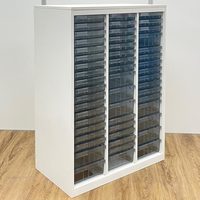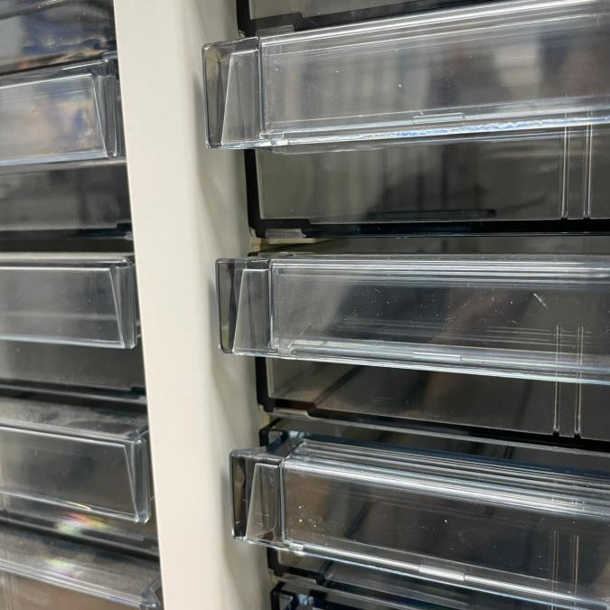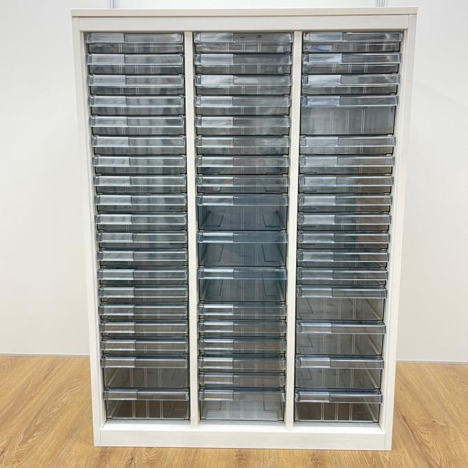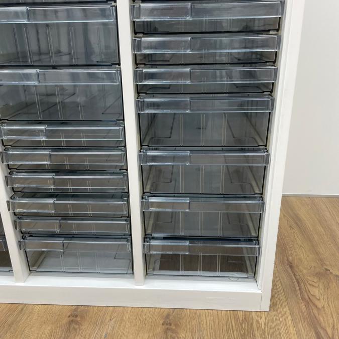 【書類・備品整理の必需品!書類や備品のストックにピッタリ!※1段目のみ浅型仕様】オカムラ レクトライン クリスタルトレー 書類 引き出し 透明 ケース ローキャビネット 整理 中古家具 オフィス家具 福岡 九州最大級《オフィスバスターズ福岡博多店は、福岡を拠点として、日本全国へ中古オフィス用品・オフィス家具を提供しております》