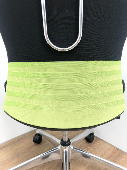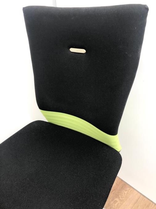 【人間工学に基づいた快適な座り心地! 背あてのしなやかな曲線が背中にフィット!】■オカムラ製 フィーゴチェア (feego) 肘無しハイバック シームレスタイプ ■ブラック×グリーン※コートハンガー外し跡のある商品となります。