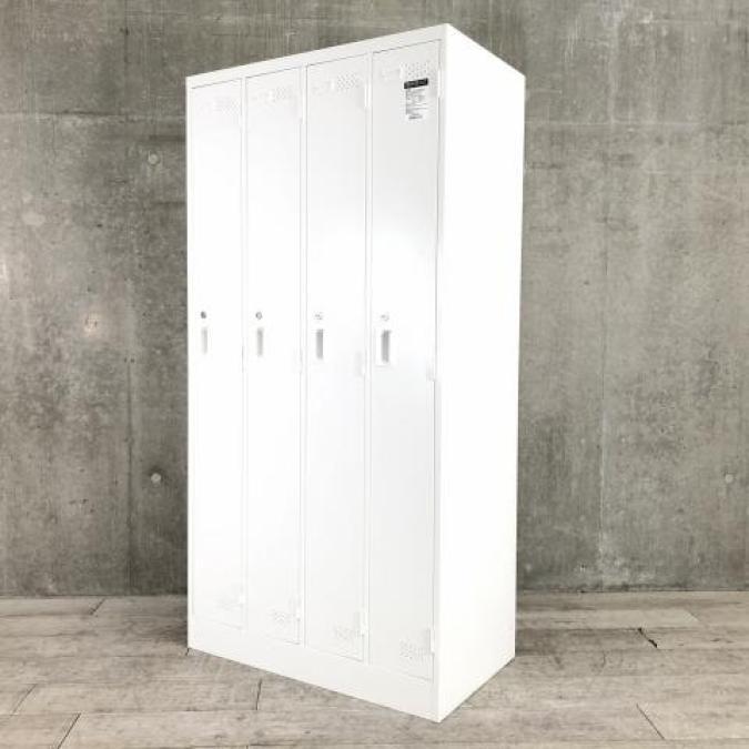 【コート類も入る縦長ロッカー!】4人用 更衣用ロッカー ホワイト シリンダー錠- 足立・葛飾店